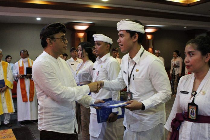 Usai melaksanakan pelantikan dan pengambilan sumpah, Walikota Jaya Negara menyerahkan secara simbolis SK PNS Kota Denpasar. Tampak hadir dalam kesempatan tersebut Wakil Walikota Denpasar, I Kadek Agus Arya Wibawa, Sekda Kota Denpasar, IB Alit Wiradana serta Pimpinan OPD di lingkungan Pemkot Denpasar.