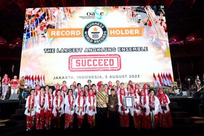 Presiden Joko Widodo dan Wakil Presiden Ma’ruf Amin turut hadir dan menyaksikan pemecahan rekor dunia Guinness World of Record untuk pergelaran angklung terbesar di dunia. Upaya pemecahan rekor tersebut digelar di Stadion Utama Gelora Bung Karno, Jakarta, pada Sabtu, 5 Agustus 2023.