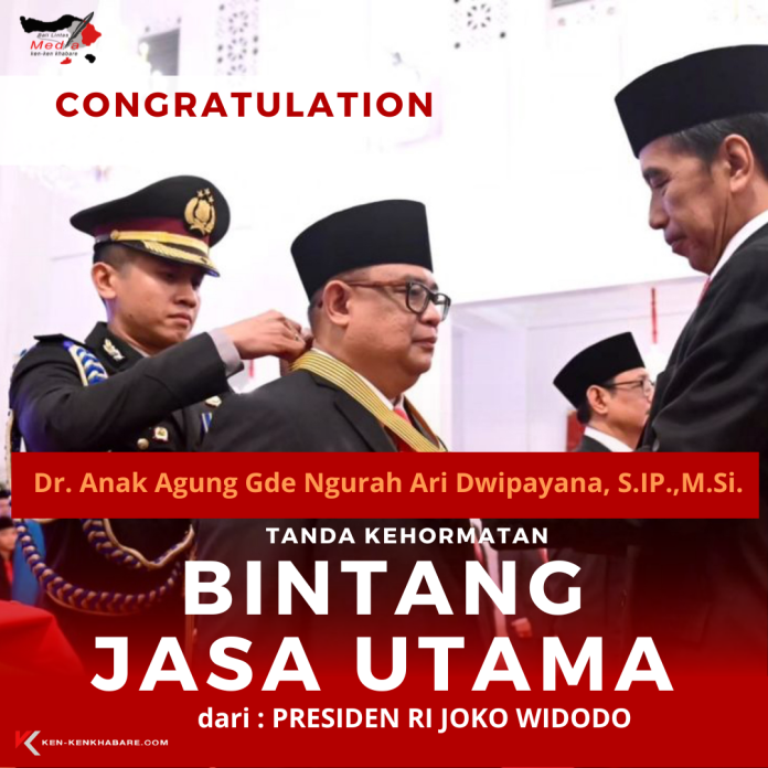Masyarakat Bali (redaksi) mengucapkan selamat kepada, Dr. Anak Agung Gde Ngurah Ari Dwipayana, S.IP., M.Si., atas anugerah Tanda Kehormatan, Bintang Jasa Utama oleh Presiden Republik Indonesia, semoga menjadi teladan dan menginspirasi anak-anak muda Bali untuk tetap berkarya yang terbaik untuk NKRI.