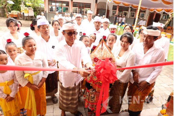 DENPASAR, KEN-KEN — Wali Kota Denpasar, I Gusti Ngurah Jaya Negara meresmikan bangunan SDN 3 Tonja dengan ditandai pemotongan pita dan penandatanganan prasasti. Peresmian dilakukan bersamaan dengan Karya Melaspas, Mendem Pedagingan, dan Pecaruan Rsi Gana, yang digelar bertepatan dengan Rahina Sugihan Bali, Kamis (14/11).