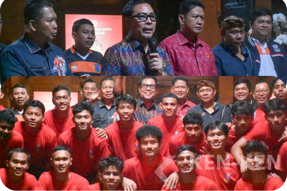 DENPASAR, KEN-KEN – Wakil Wali Kota Denpasar I Kadek Agus Arya Wibawa secara resmi melepas pemain, pelatih, dan official Tim Sepak Bola Perseden Denpasar untuk bertolak ke Surabaya dalam rangka melakoni fase grup Liga 3 Nusantara. Pelepasan ditandai dengan penyerahan dana tali kasih serta doa bersama di Kantor Wali Kota Denpasar, Rabu (26/11) petang.