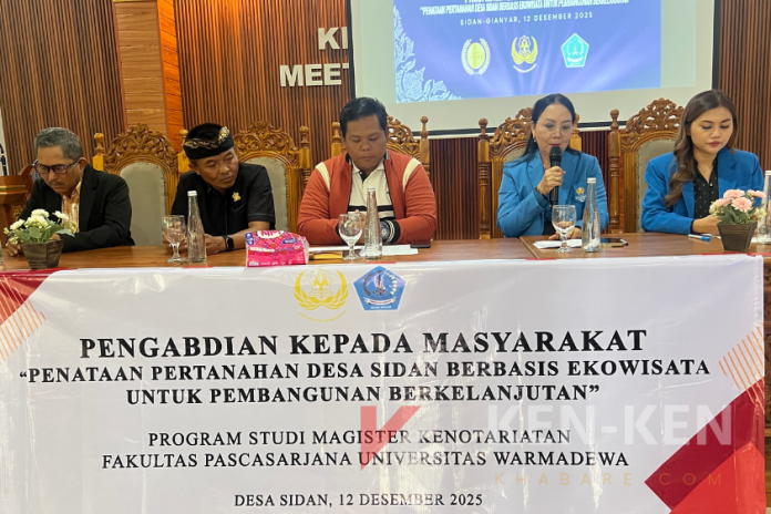 GIANYAR, KEN-KEN — Program Studi Magister Kenotariatan (M.Kn) Fakultas Pascasarjana Universitas Warmadewa (Unwar) melaksanakan kegiatan Pengabdian Kepada Masyarakat (PKM) di Desa Sidan, Kecamatan Gianyar, Kabupaten Gianyar, Jumat (12/12/2025). Kegiatan ini dibuka secara resmi oleh Dekan Fakultas Pascasarjana Unwar, Prof. Dr. Ni Luh Made Mahendrawati, S.H., M.Hum.