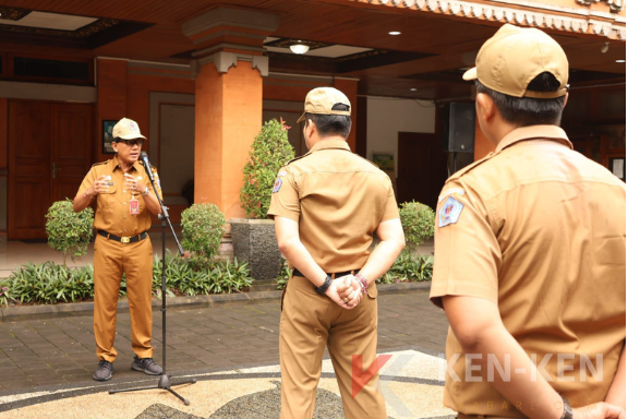 DENPASAR, KEN-KEN – Pj. Sekretaris Daerah Kota Denpasar, IGN Eddy Mulya, memimpin apel disiplin Aparatur Sipil Negara (ASN) di lingkungan Sekretariat Daerah Kota Denpasar. Apel yang digelar di halaman Kantor Wali Kota Denpasar ini merupakan agenda rutin setiap Senin pagi dan diikuti seluruh ASN Pemkot Denpasar.