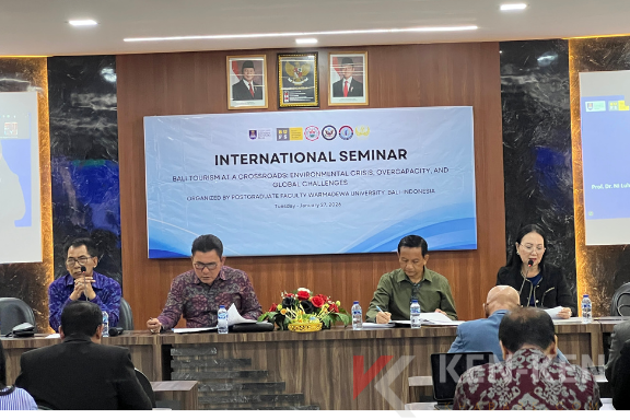 DENPASAR, KEN-KEN — Pariwisisata Bali saat ini berada di titik kritis. Pesatnya pertumbuhan sektor pariwisata tidak hanya membawa manfaat ekonomi, tetapi juga memunculkan berbagai persoalan serius, mulai dari krisis lingkungan, kepadatan daya dukung wilayah (overcapacity), hingga tekanan globalisasi. Kondisi tersebut menjadi fokus utama dalam Seminar Internasional Fakultas Pascasarjana Universitas Warmadewa bertajuk “Tourism Bali at a Crossroads: Environmental Crisis, Overcapacity, and Global Challenges”, yang digelar di Ruang Sri Wijaya Mahadewi, Kampus Pascasarjana Universitas Warmadewa, Selasa (27/1) yang dibuka oleh Dekan Fakultas Pascasarjana, Prof. Dr. Ni Luh Made Mahendrawati.
