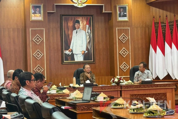Foto: Gubernur Bali Wayan Koster saat melaksanakan rapat terkait Percepatan Penggunaan Kendaraan Listrik bersama Direktur Retail dan Niaga PT. PLN (Persero) Adi Priyanto di Ruang Rapat Kertha Sabha, Rumah Jabatan Gubernur Bali, Jayasabha pada Sabtu (24/1)