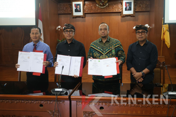 Penandatanganan nota kesepahaman dilakukan oleh Wali Kota Denpasar, I Gusti Ngurah Jaya Negara bersama Kepala Kejaksaan Negeri Denpasar Trimo, S.H., M.H. serta Ketua Pengadilan Negeri Denpasar Dr. Iman Luqmanul Hakim, S.H., M.Hum., di Kantor Wali Kota Denpasar, Kamis (12/3).