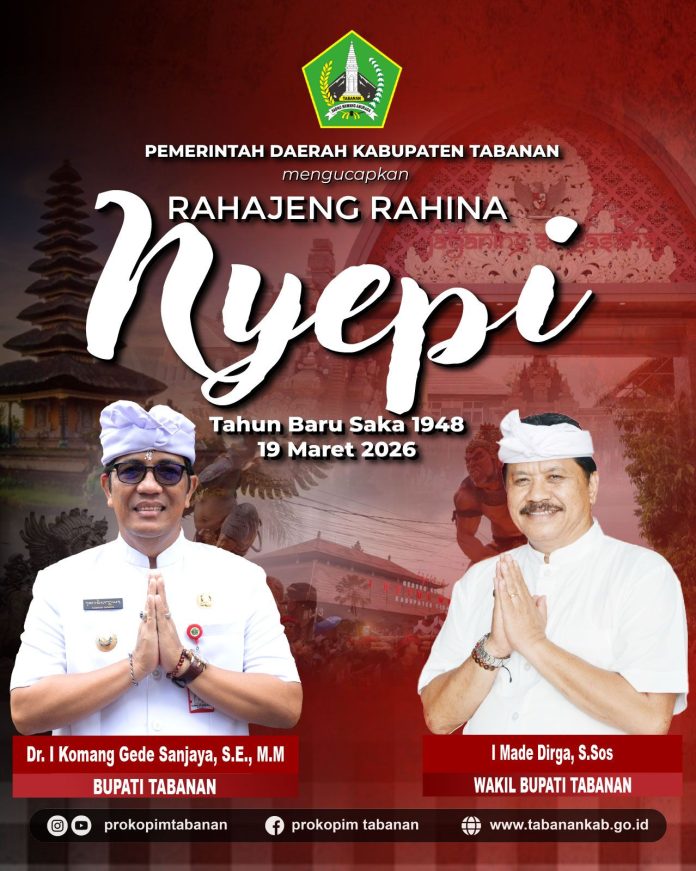 TABANAN, KEN-KEN – Menyambut Hari Raya Nyepi Tahun Baru Saka 1948 Tahun 2026, Pemerintah Kabupaten Tabanan mengajak seluruh masyarakat untuk memaknai momentum suci ini sebagai sarana introspeksi diri serta memperkuat keharmonisan kehidupan.