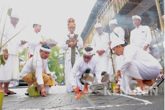 Dalam kesempatan tersebut, Wali Kota Jaya Negara bersama jajaran turut nyaksiang dan mengikuti seluruh rangkaian prosesi yang diakhiri dengan ritual mendem tawur di kawasan Catus Pata.