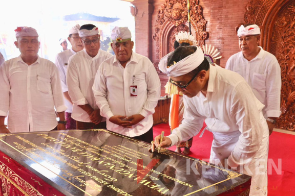 Pada kesempatan tersebut, Wali Kota Jaya Negara juga menandatangani prasasti dan menyerahkan secara simbolis bantuan belanja sesajen dari Pemerintah Kota Denpasar melalui Bagian Kesra sebesar Rp200 juta.