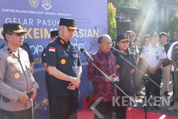 DENPASAR, KEN-KEN – Gubernur Bali Wayan Koster menegaskan pentingnya sinergi lintas lembaga dalam menjaga stabilitas keamanan Bali, menyusul pengukuhan Satuan Tugas Patroli Keimigrasian “Dharma Dewata” oleh Direktorat Jenderal Imigrasi di Lapangan Puputan Margarana Niti Mandala Renon, Denpasar, Rabu (15/4/2026). Pengukuhan satgas ini menjadi langkah strategis untuk memperkuat pengawasan terhadap orang asing di Bali, sekaligus menjaga kenyamanan warga dan wisatawan.